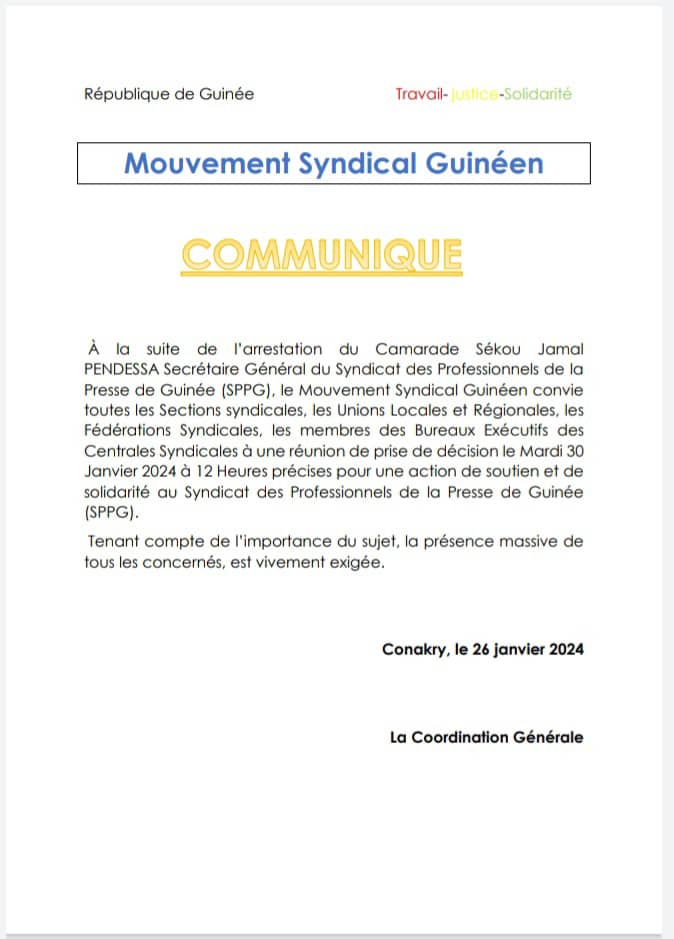 Déjà l’annonce a été faite, il y a quelques jours. Demain mardi donc, une réunion de décision par rapport à l’incarcération du secrétaire général du Syndicat des professionnels de la presse de Guinée, Sékou Jamal Pendessa.