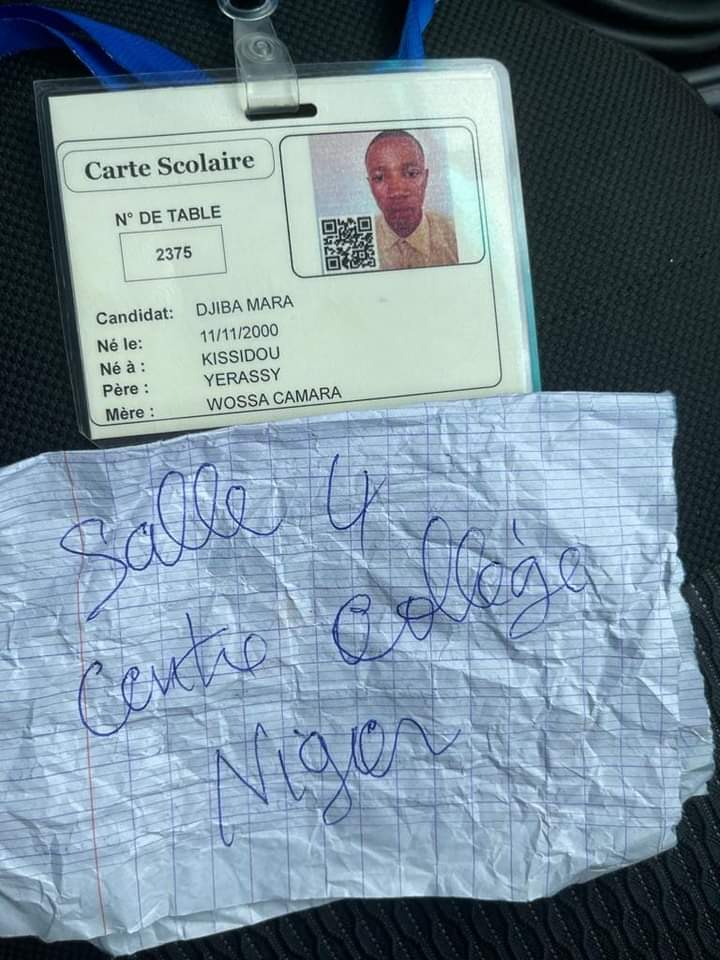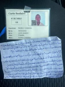 Lancinet Odia Kourouma Mle: 290 780 E centre Morifindjan 1 école d’origine Madina Koura, ont été éliminés et remplacés pour port de téléphones.