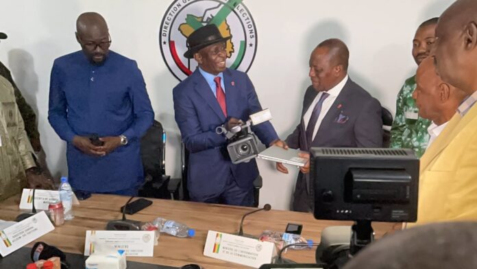 À l’approche de l’élection présidentielle prévue le 28 décembre 2025, la Direction Générale des Élections (DGE) a doté ce mardi les équipes de presse chargées de suivre les activités des candidats en lice. Neuf groupes de journalistes issus de la RTG, d’Horoya et de l’AGP ont reçu des ordinateurs portables et des caméras modernes, lors d’une cérémonie organisée au siège de la DGE. L’événement s’est déroulé en présence des ministres de l’Administration du Territoire et de la Décentralisation, de l’Information et de la Communication, ainsi que de plusieurs cadres des départements concernés.