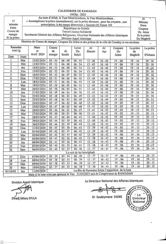 C’est officiel : la date du début du mois sacré du ramadan en République de Guinée a été fixée à mardi 12 mars 2024.