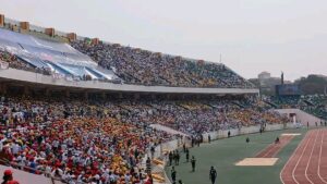 À l’approche du carrefour stratégique menant au stade, l’atmosphère prenait des allures de fête nationale. Les drapeaux rouge, jaune et vert flottaient fièrement, dessinant un tunnel de couleurs éclatantes. La foule grossissait à vue d’œil, des milliers de citoyens convergeaient vers Nongo, transformant les abords du stade en une marée humaine vibrante. Hommes, femmes et jeunes arboraient fièrement le tricolore sur leurs tenues, leurs écharpes et leurs accessoires, offrant l’image d’une Guinée unie et galvanisée par l’événement.