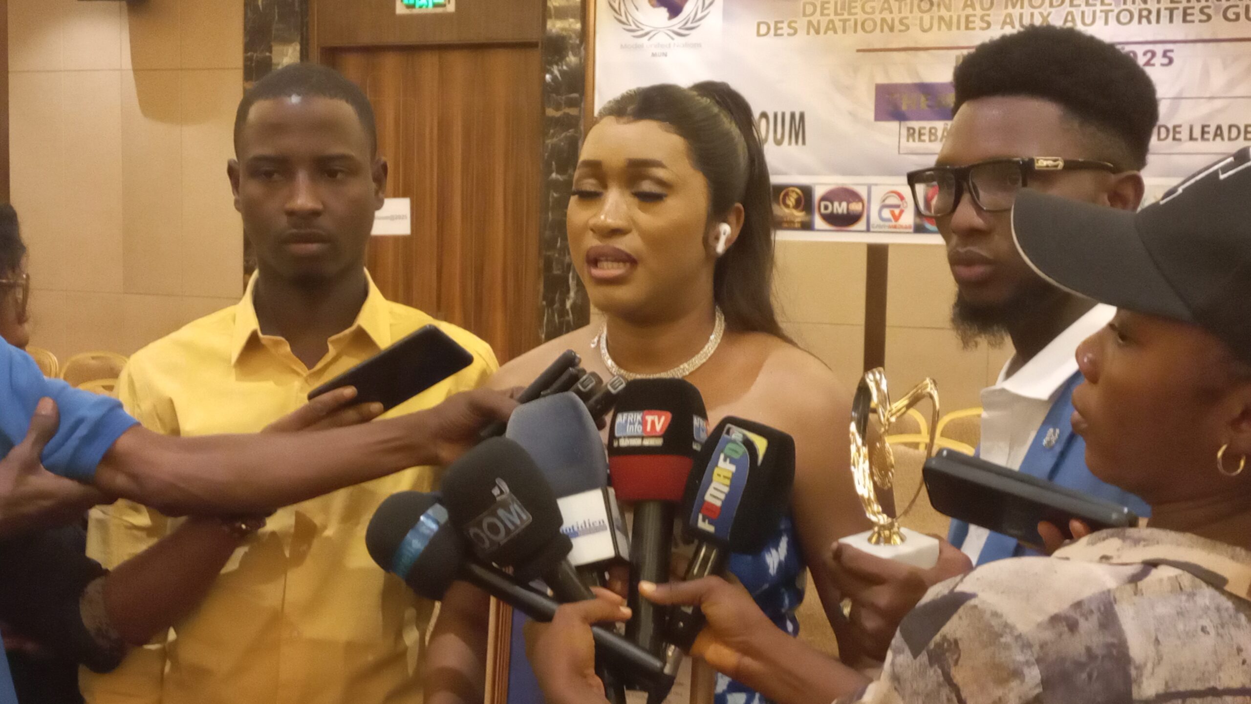 Ce samedi 23 août, l’hôtel Kaloum de Conakry a accueilli une cérémonie solennelle consacrée à la présentation officielle du prix de la meilleure délégation, remporté par la Guinée lors de la 3ᵉ édition du Modèle International des Nations-Unies Kinshasa 2025 ( KIN-MUN) tenue à Kinshasa. Ce prestigieux trophée a été porté par Aminata Will Soumah, jeune activiste guinéenne, dont l’engagement et la prestance ont fait briller son pays sur la scène internationale.