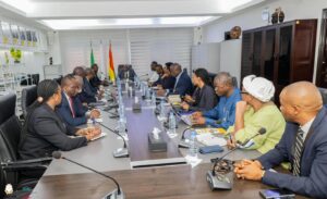 Le Premier Ministre Amadou Oury Bah a reçu ce mercredi, au Palais de la Primature, une délégation du Fonds Africain de Garantie et de Coopération Économique (FAGACE), conduite par son Directeur Général, le Docteur Ngueto Tiraina Yambaye.