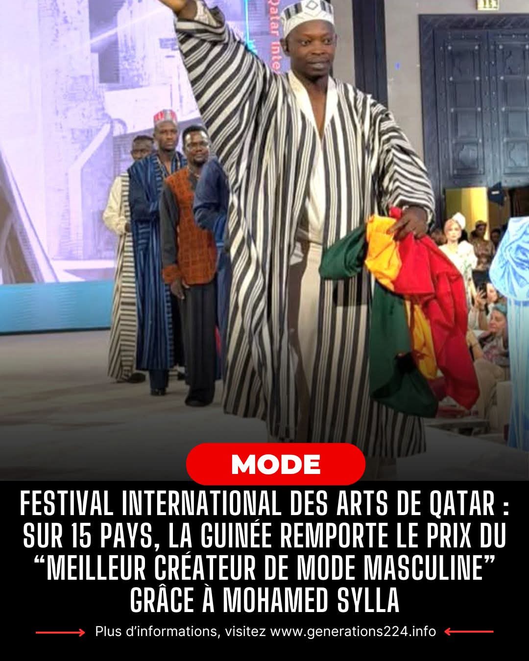 Au-delà de cette distinction individuelle, la délégation guinéenne a été honorée collectivement. Les deux peintres et le sculpteur présents ont reçu des trophées d’honneur, tout comme les Ballets Africains de Guinée qui ont décroché trois distinctions supplémentaires. En tout, la Guinée repart de Doha avec sept trophées d’honneur et quatre prix majeurs, dont celui de Meilleur Créateur de Mode Masculine, confirmant son rayonnement artistique et culturel sur la scène mondiale. En tout, la Guinée repart de Doha avec sept trophées d’honneur et quatre prix majeurs, dont celui de Meilleur Créateur de Mode Masculine, confirmant son rayonnement artistique et culturel sur la scène mondiale