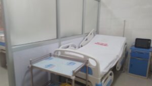 Des urgences chirurgicales : 8 lits, 1 bureau de Médecin, 1 bureau pour les infirmiers, 1 bureau pour les anesthésistes, 2 blocs opératoires, une salle de stérilisation, un bloc de toilettes. Le pavillon situé au-dessus des urgences a été également réhabilité: toiture, bureaux, salles d’hospitalisation, toilettes.