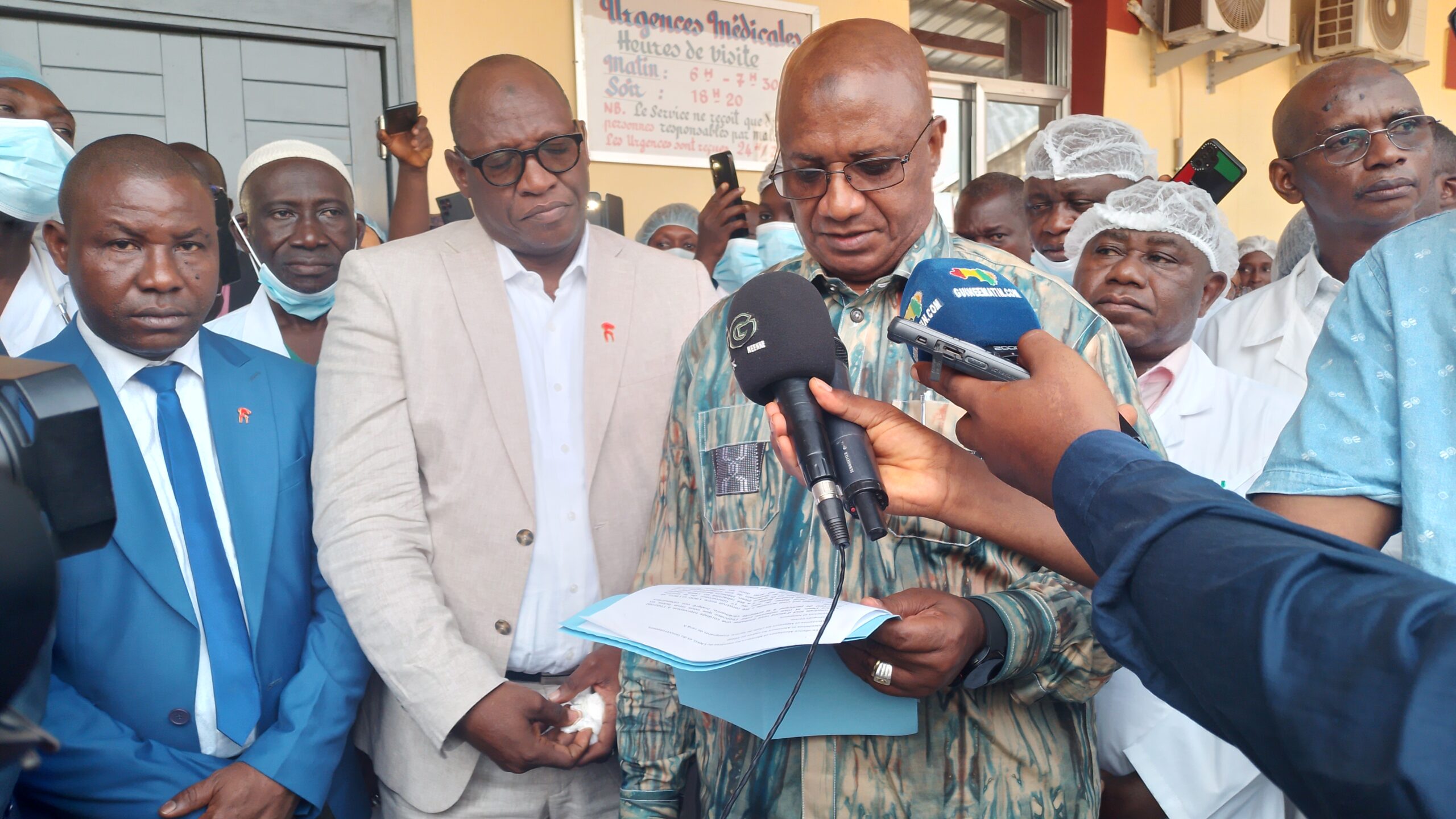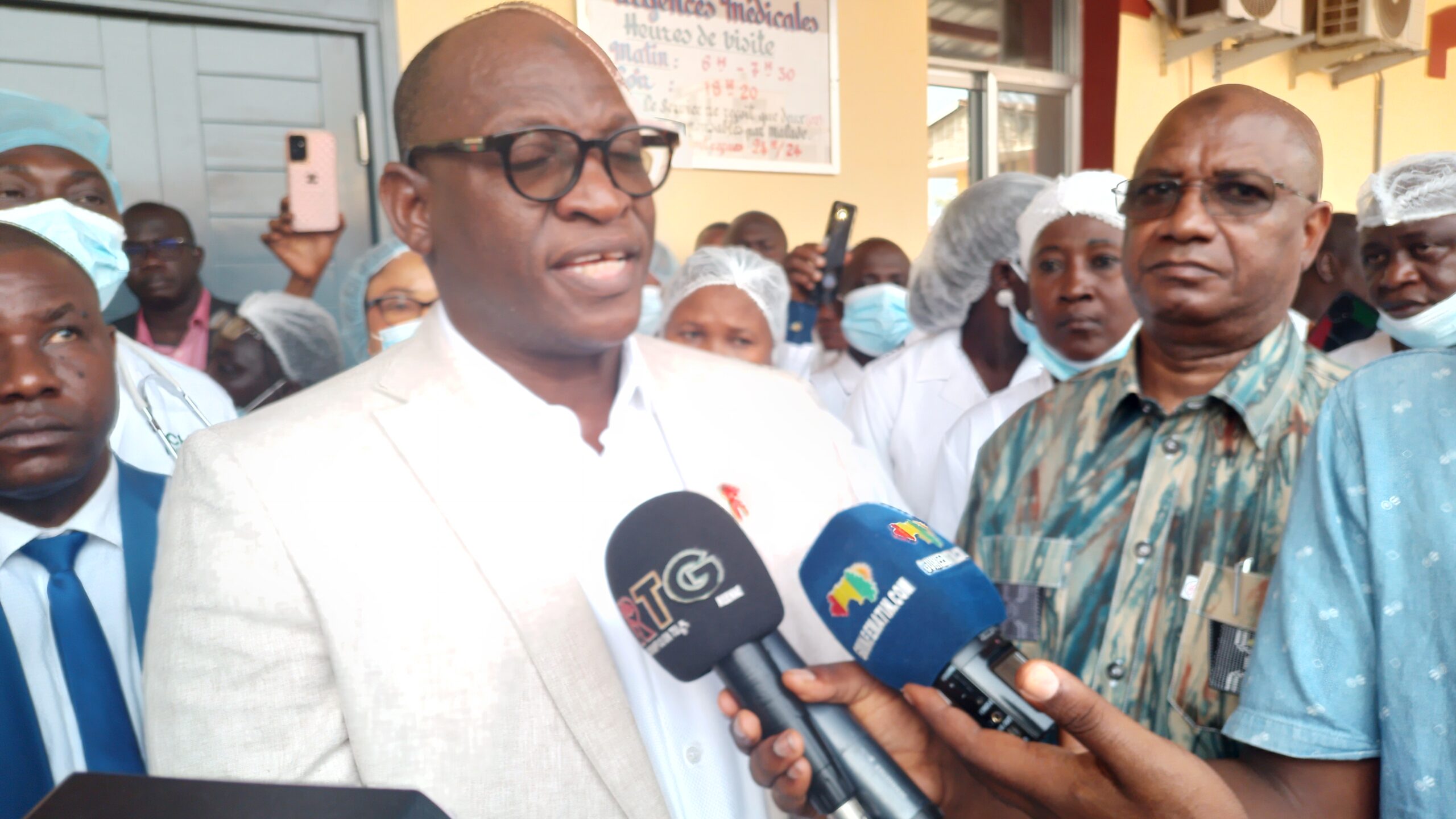 En effectuant des visites inopinées, la première visite a été faite ici à l’hôpital national Ignace Deen. Mais, malheureusement , les conditions d’accueil n’étaient pas du tout acceptables. Nous avons trouvé des lits vetustes, des matelas déchirés,  des toilettes qui coulaient à flot au bloc opératoire. Il y’avait des poubelles remplies des seringues et de flacons (…). C’est ainsi, j’ai donné des instructions fermes pour que ces services là soient immédiatement rénovés et c’est ce qui est fait.