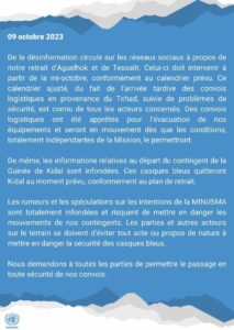 Si les autres contingents des pays qui ont pris part à la Mission des Nations unies pour la stabilisation du Mali sont déjà rentrés au pays. Les militaires guinéens eux, en tout cas si faut-il croire au communiqué de MINUSMA, il n’y a pas de calendrier de retour des soldats de l’armée guinéenne prévu pour le moment.
