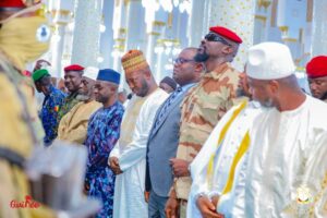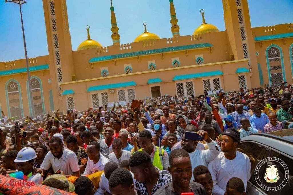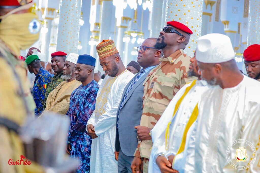 La banque EcoBank a également joué un rôle clé en préfinançant les travaux, tandis que la magnanimité du ministre des finances a facilité les décaissements dans les règles de l’art. L’entreprise Youla et Frères exprime sa gratitude envers le Roi d’Arabie-Saoudite et envers le président Mamadi Doumbouya pour leur soutien à ce projet primordial pour la communauté musulmane de Guinée. (Ci-dessous les images de la prière du Chef de l’État et des fidèles musulmans à la grande mosquée Fayçal).