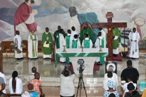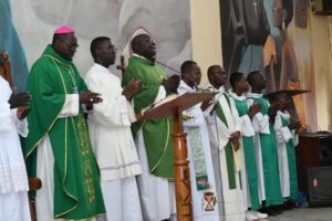 Ce dimanche, l’archevêque coadjuteur de Conakry, le Monseigneur François Sylla a présidé, la messe d’installation du nouveau curé de la paroisse Anne Marie Javouhey de Nongo, l’abbé Marc Kombaté.