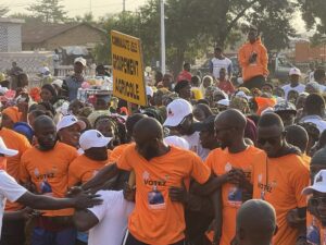 La cérémonie s’est clôturée par une marche des militants jusqu’à la résidence du candidat, scandant le slogan : « Nabé président, Nabé solution. »