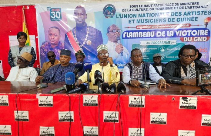 Ce lundi, l’Union Nationale des Artistes et Musiciens de Guinée (UNAMGUI) a animé une conférence de presse à la Maison de la presse située au quartier Minière, commune de Dixinn : « Le Flambeau de la Victoire GMD », a été le thème de la rencontre. Elhadj Mohamed Lakras Cissoko, le président de l’UNAMGUI, porte la flamme des artistes et musiciens guinéens.